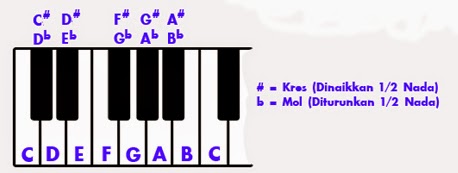 *sumber gambar google.comkesimpulan dari gambar diatas adalah,C# = D♭D# = E♭F# = G♭G# = A♭A# = B♭Sekarang kita sudah mengerti dimana saja tata letak not dan chord pada tuts keyboard/ piano. Selanjutnya kita membahas tentang Chord, diatas disebutkan bahwa chord adalah kumpulan dari tiga not atau lebih yang jika dimainkan secara bersamaan akan membentuk suatu suara yang harmonis.
